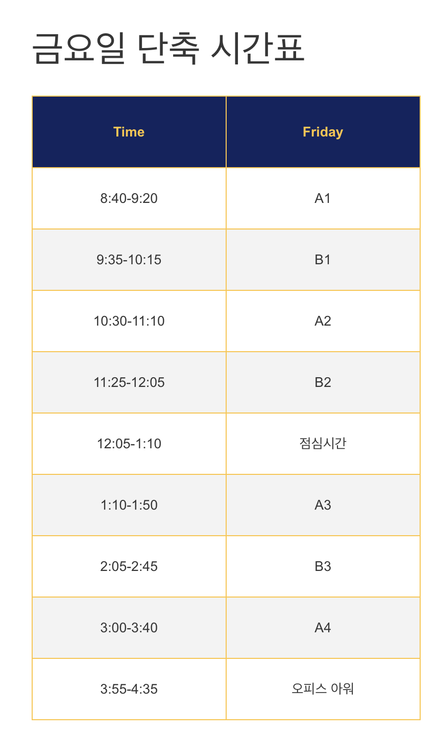금요일 단축 시간표