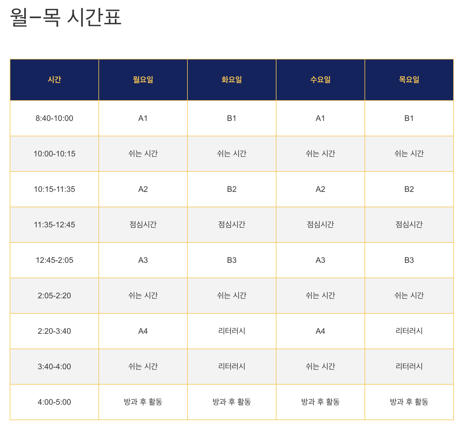 월–목 시간표